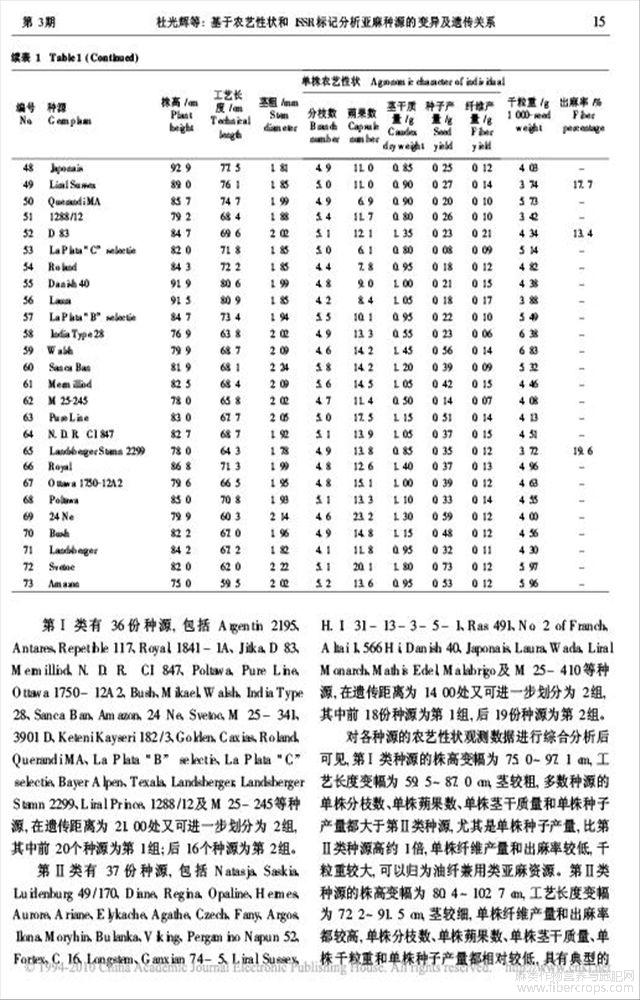 基于农艺性状和ISSR标记分析亚麻种源的变异及遗传关系