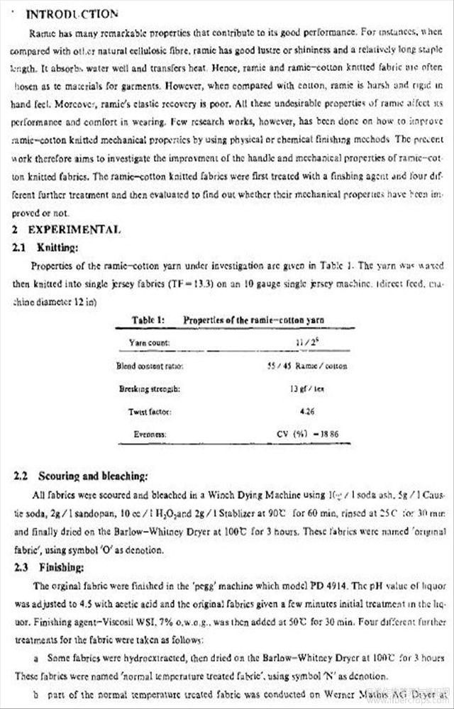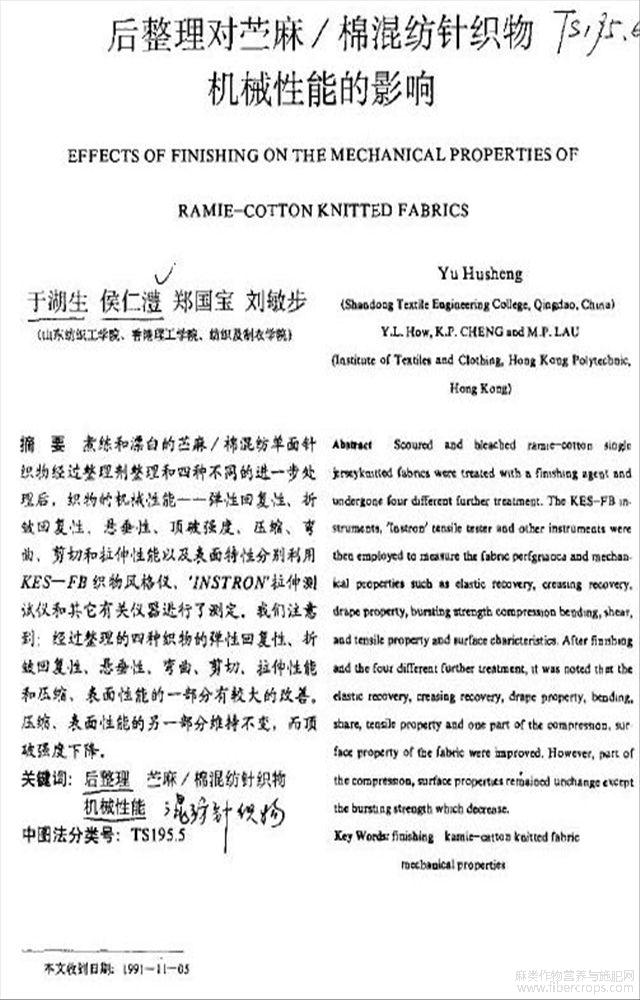 后整理对苎麻/棉混纺针织物机械性能的影响