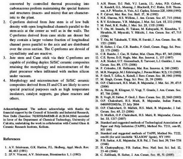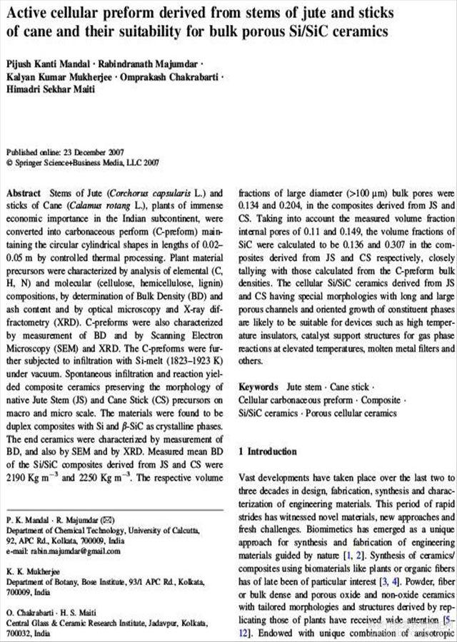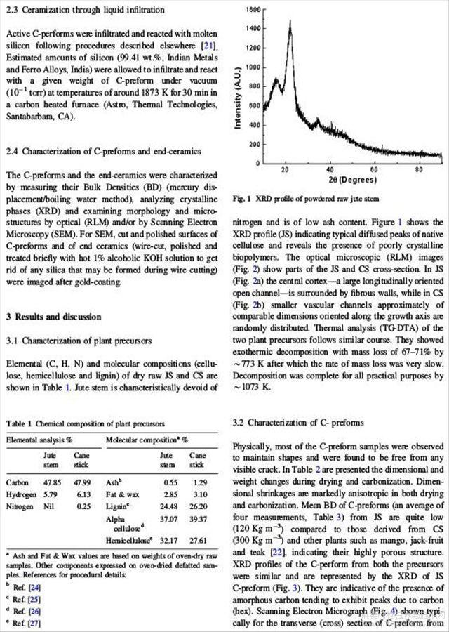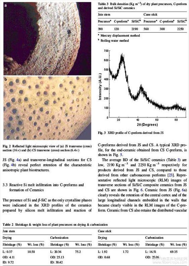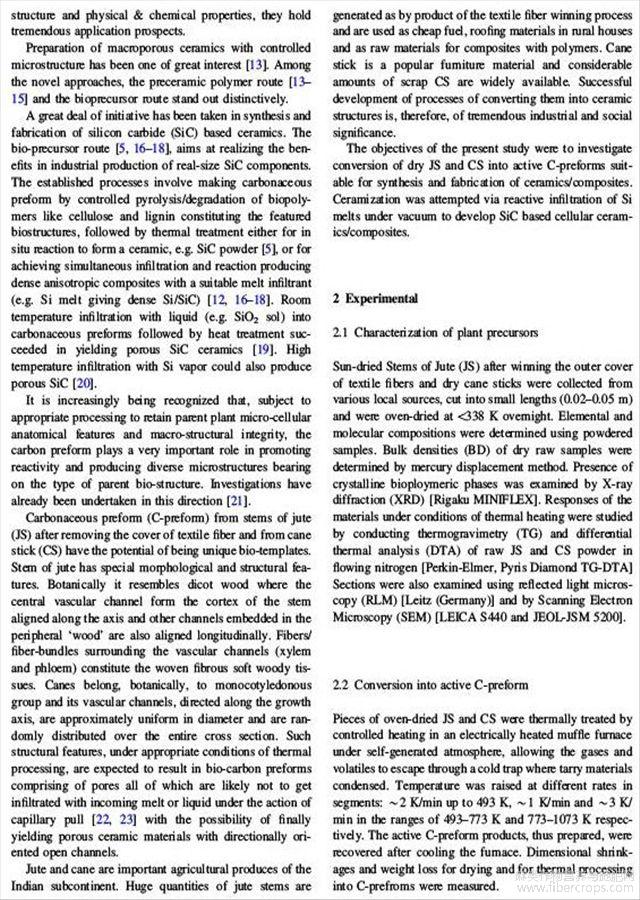 黄麻茎秆在多孔陶瓷Si SiC加工中的应用研究(英文)