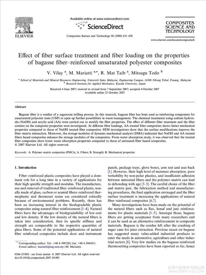 Effect of fiber surface treatment and fiber loading on the properties of bagasse
