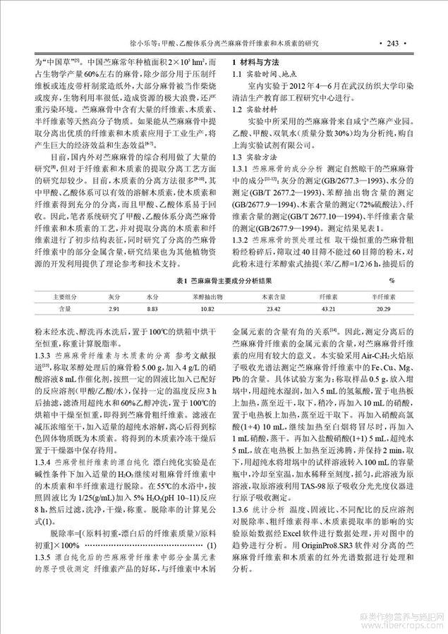 甲酸_乙酸体系分离苎麻麻骨纤维素和木质素的研究_徐小乐