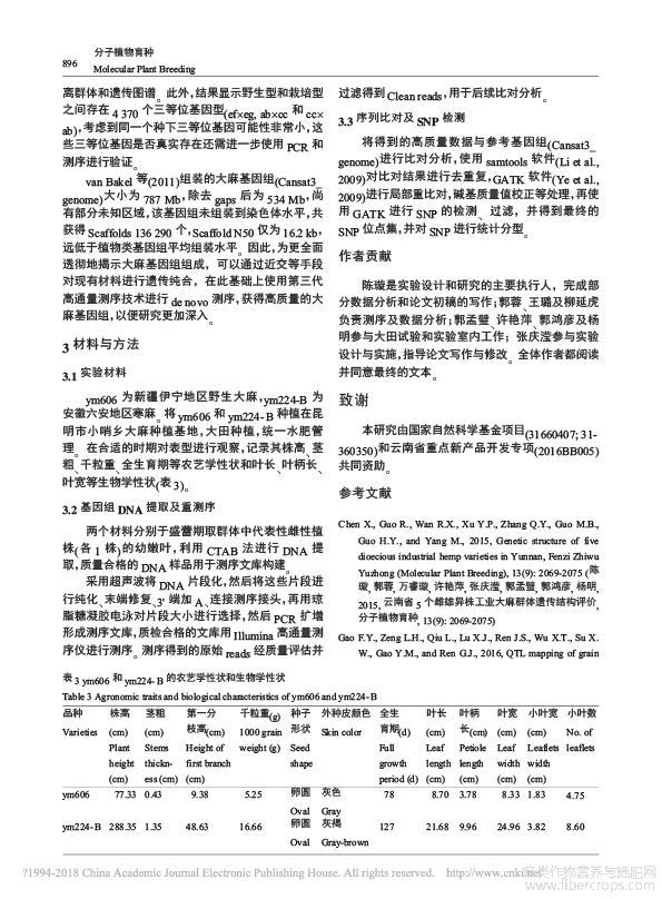 基于全基因组重测序的野生型大麻和栽培型大麻的多态性SNP分析_陈璇