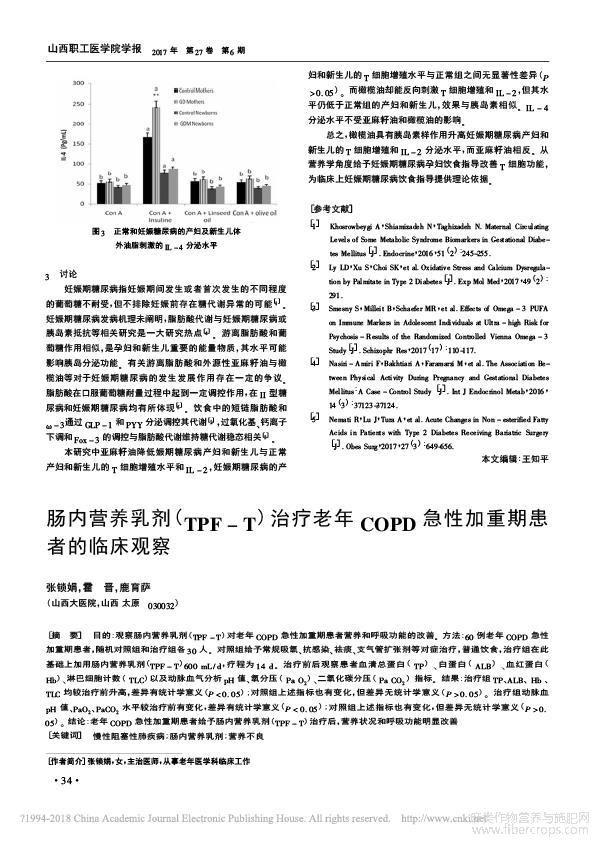 亚麻籽油和橄榄油影响妊娠期糖尿病产妇和新生儿T细胞功能体外研究