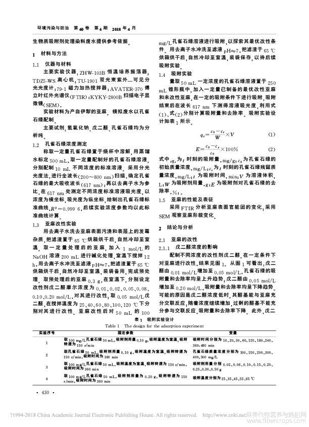 改性亚麻处理孔雀石绿染料废水的研究_淡玄玄