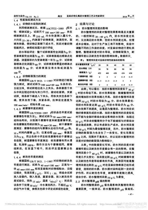亚麻织物无氟防水整理工艺及性能研究