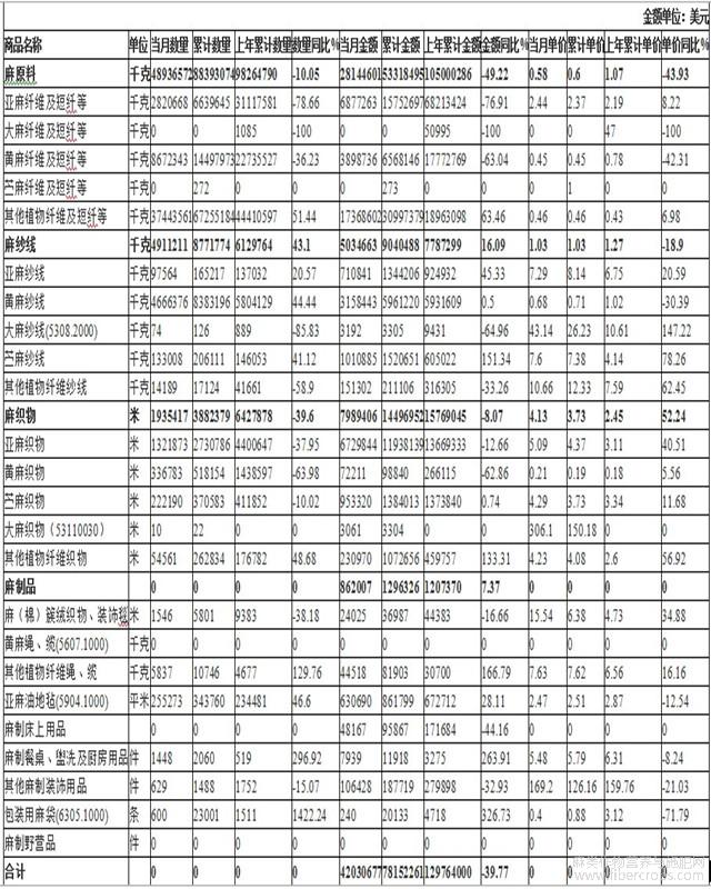 2012年2月麻类纤维、纺织及制品分量值进口总表