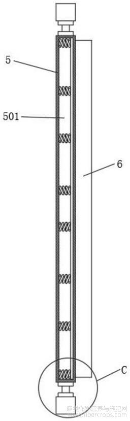 6.根据权利要求5所述的工业大麻溯源监管装置,其特征在于:所述抵紧弹簧(502)设置为直弹簧,所述抵紧弹簧(502)的一端与中空槽(501)的内壁相抵,所述抵紧弹簧(502)的另一端与滑动条(601)相抵,且所述抵紧弹簧(502)处于压缩状态。