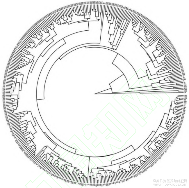 对供试材料的农艺性进行聚类分析(图4),387份亚麻种质资源被分为5个类群。