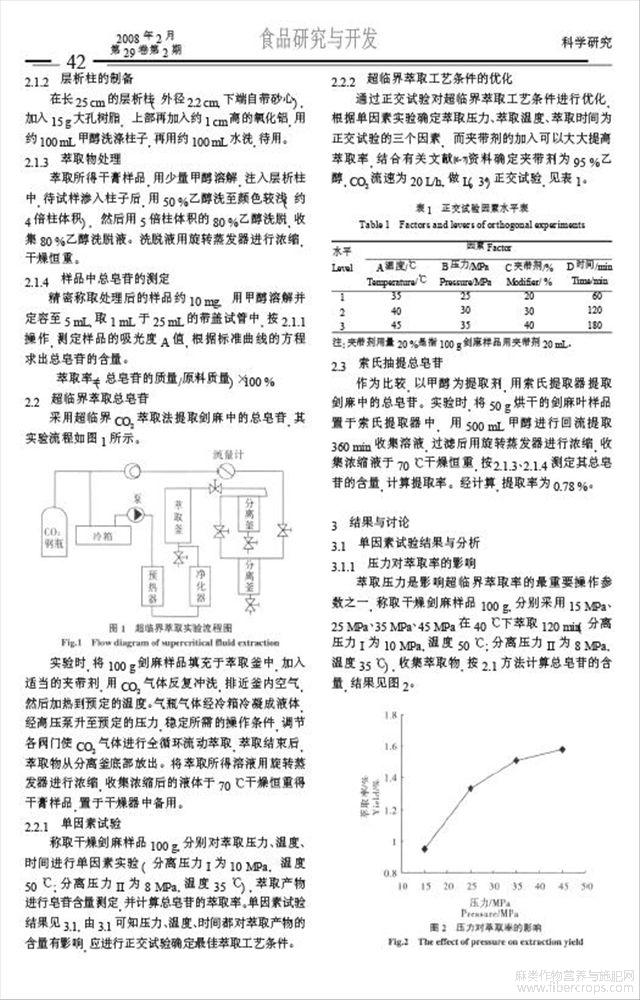 超临界CO2萃取剑麻中总皂苷的工艺研究