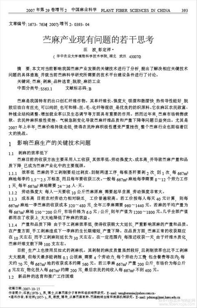 来源:中国麻业科学,2007,29(S2):393-395,403