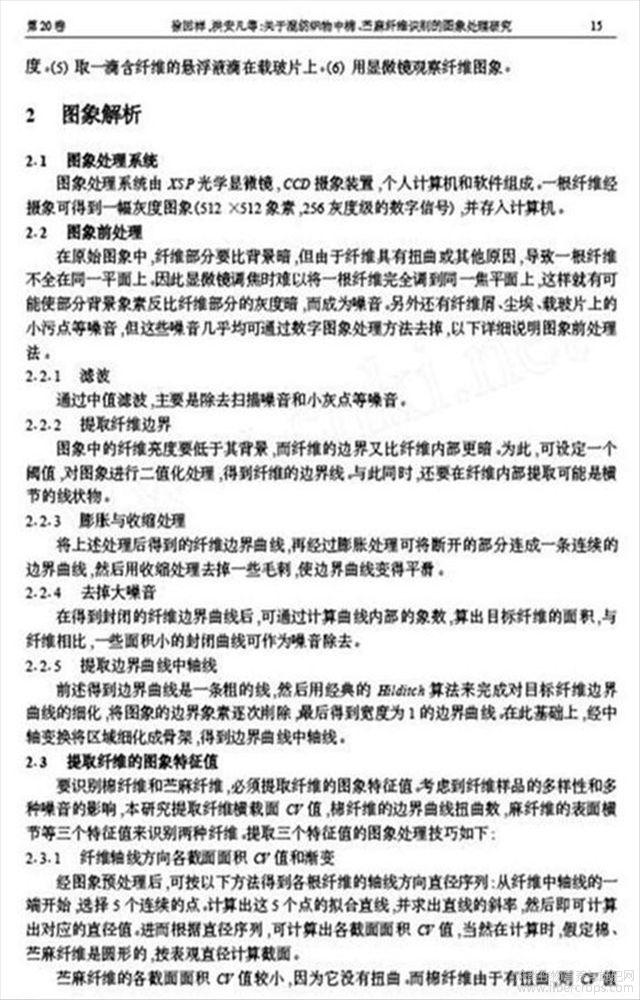 关于混纺织物中棉、苎麻纤维识别的图象处理研究