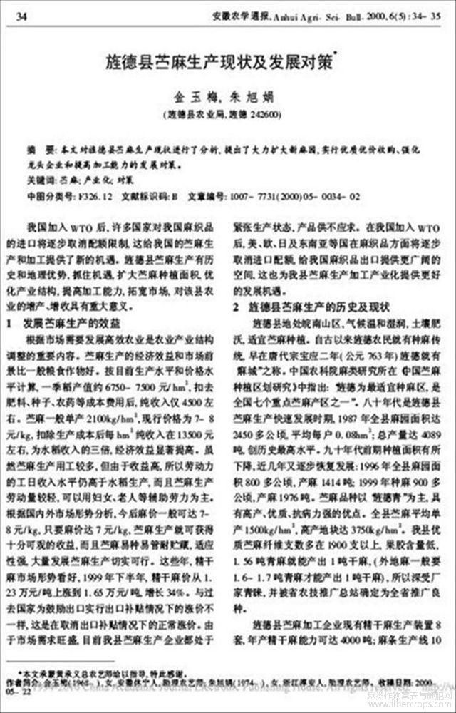 旌德县苎麻生产现状及发展对策