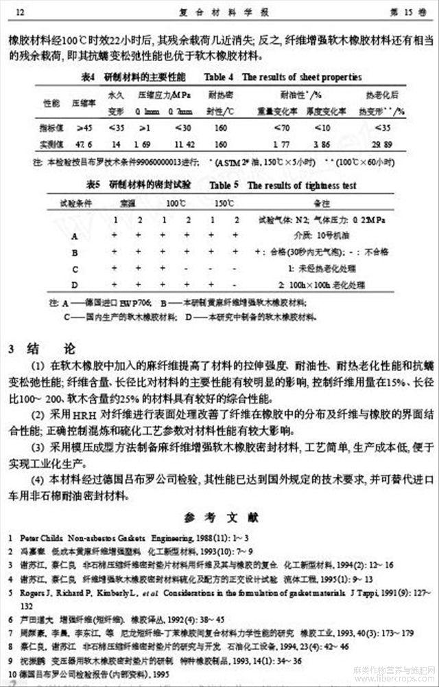 麻纤维增强软木橡胶非石棉密封材料的制备及性能研究