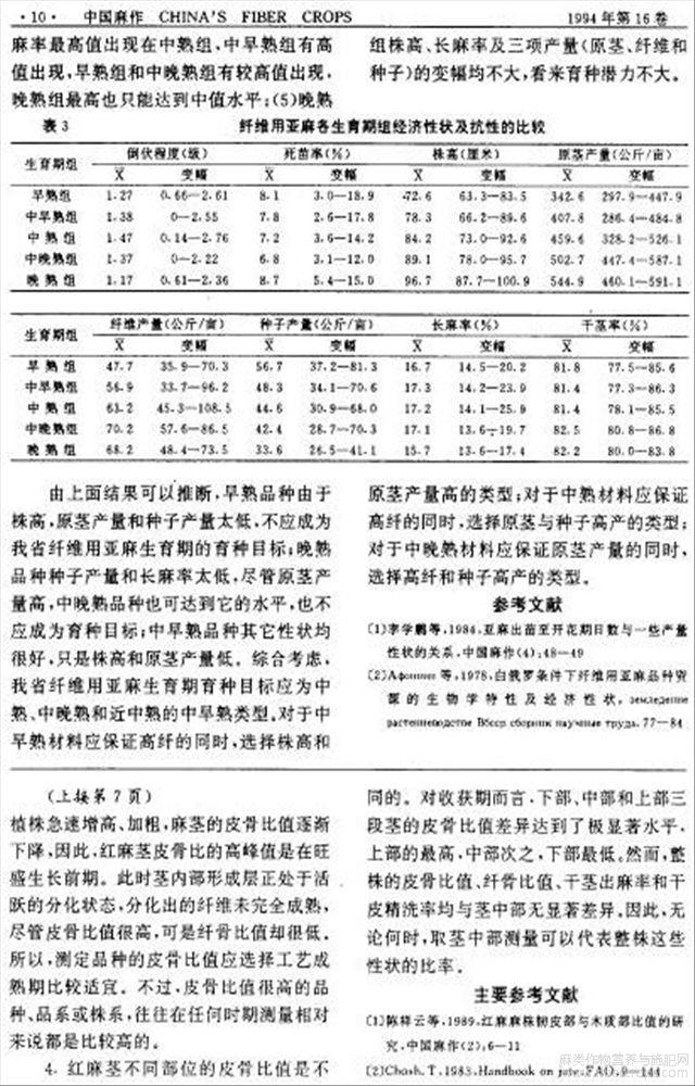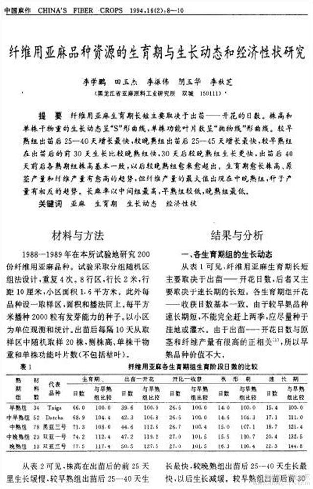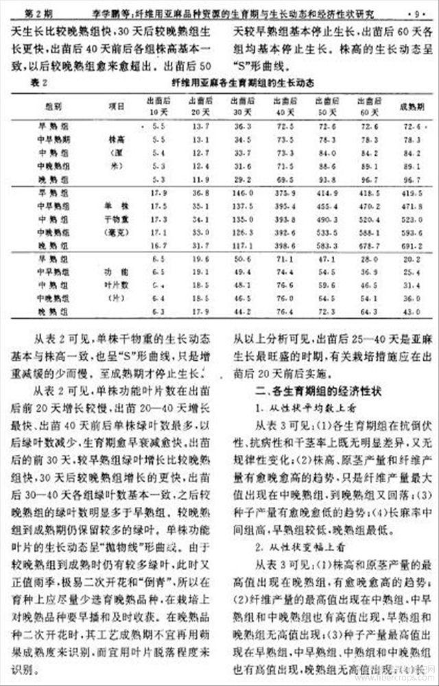 纤维用亚麻品种资源的生育期与生长动态和经济性状研究