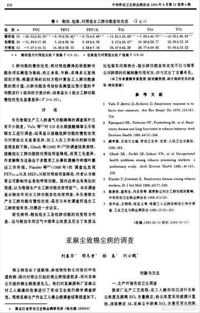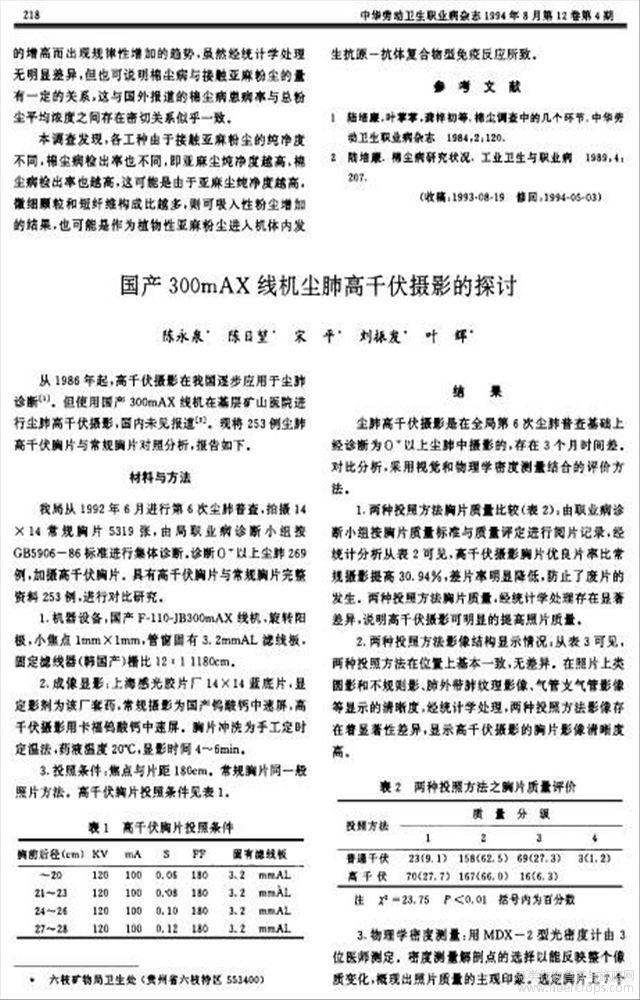 来源:中华劳动卫生职业病杂志,1994,12(4):216-218