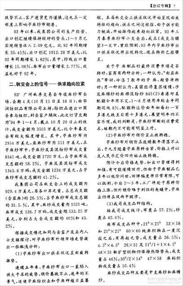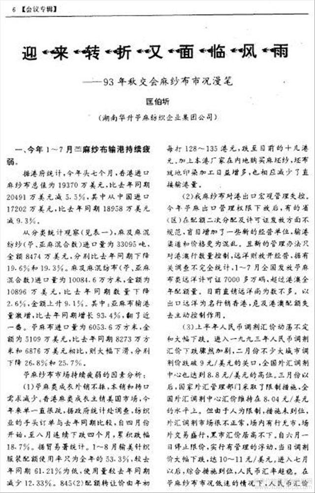 迎来转斩又面临风雨--93年秋交会麻纱布市况漫笔