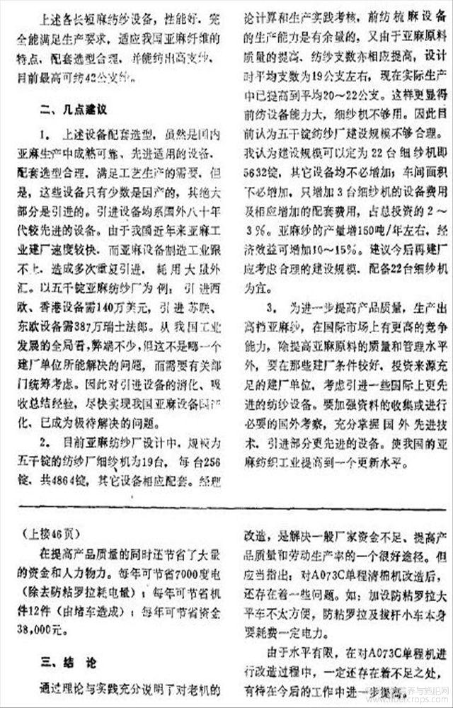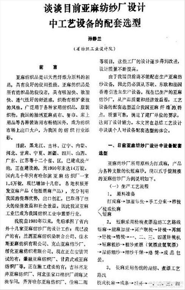谈谈目前亚麻纺纱厂设计中工艺设备的配套选型