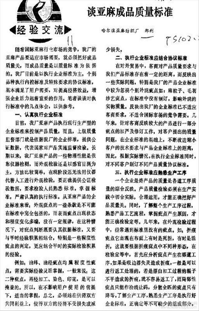 谈亚麻成品质量标准