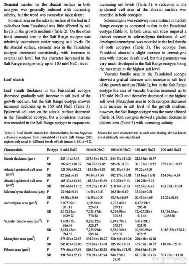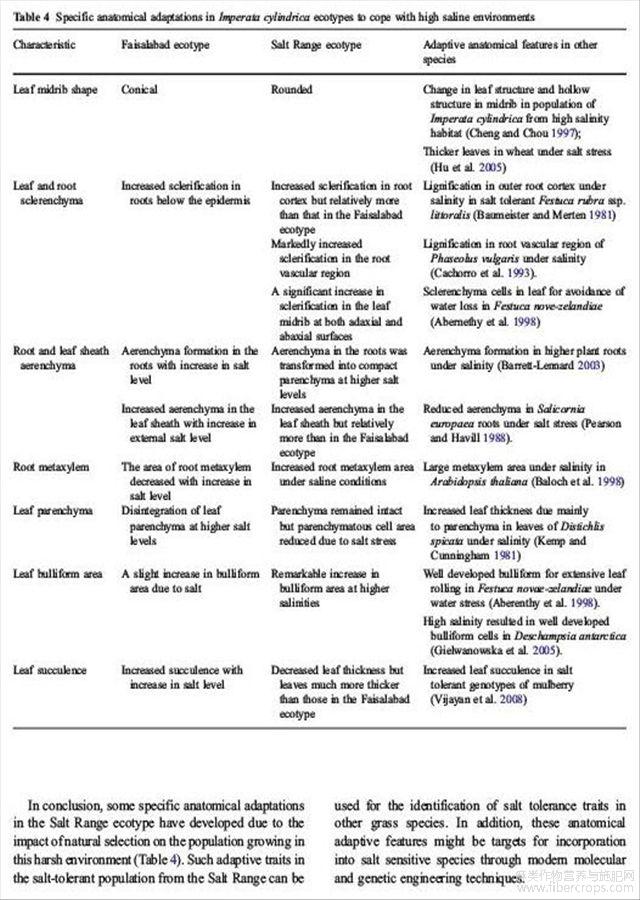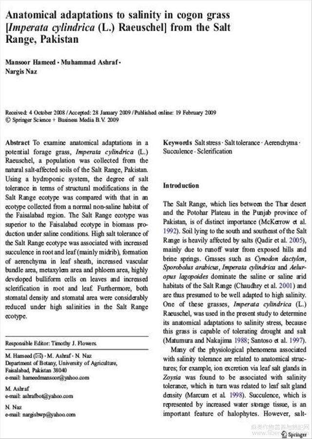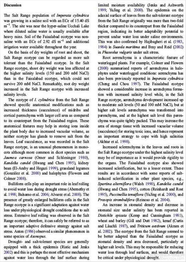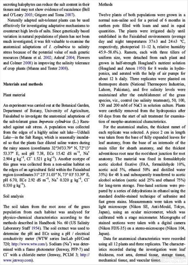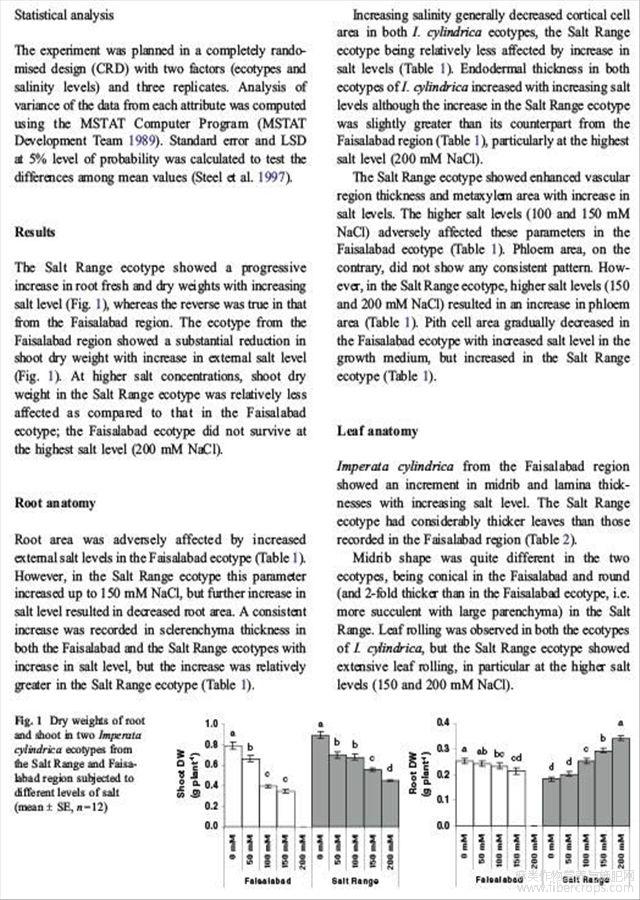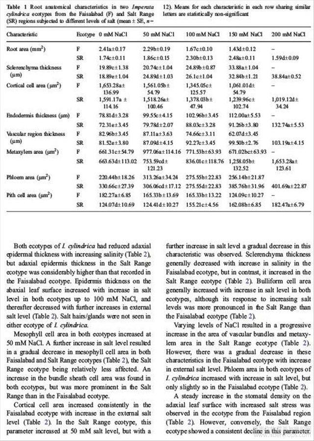 巴基斯坦高盐区白茅草耐盐性的生理结构分析(英文)