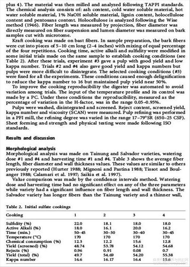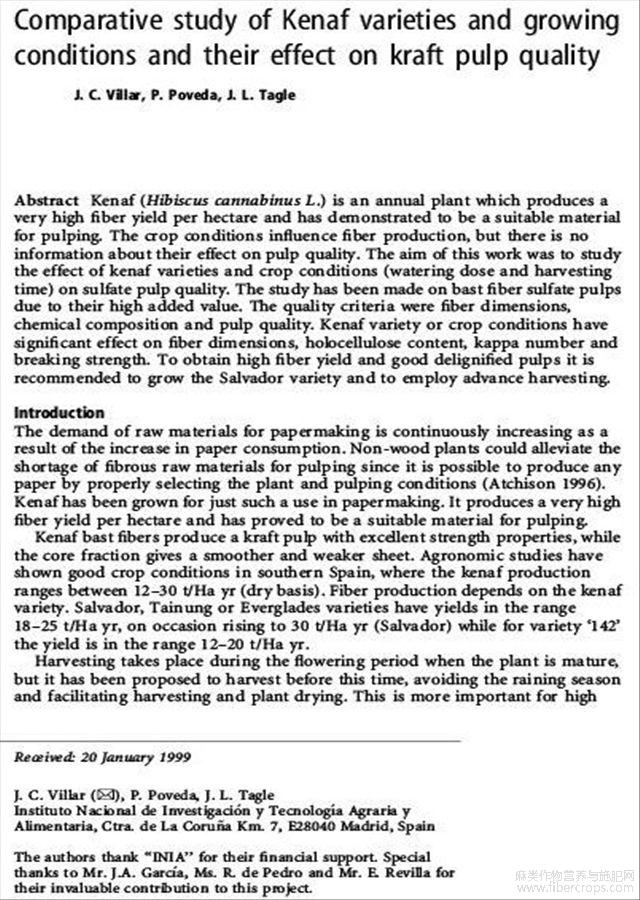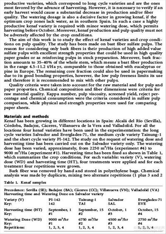 不同红麻品种的生长条件及其对牛皮纸浆质量影响的比较研究(英文)