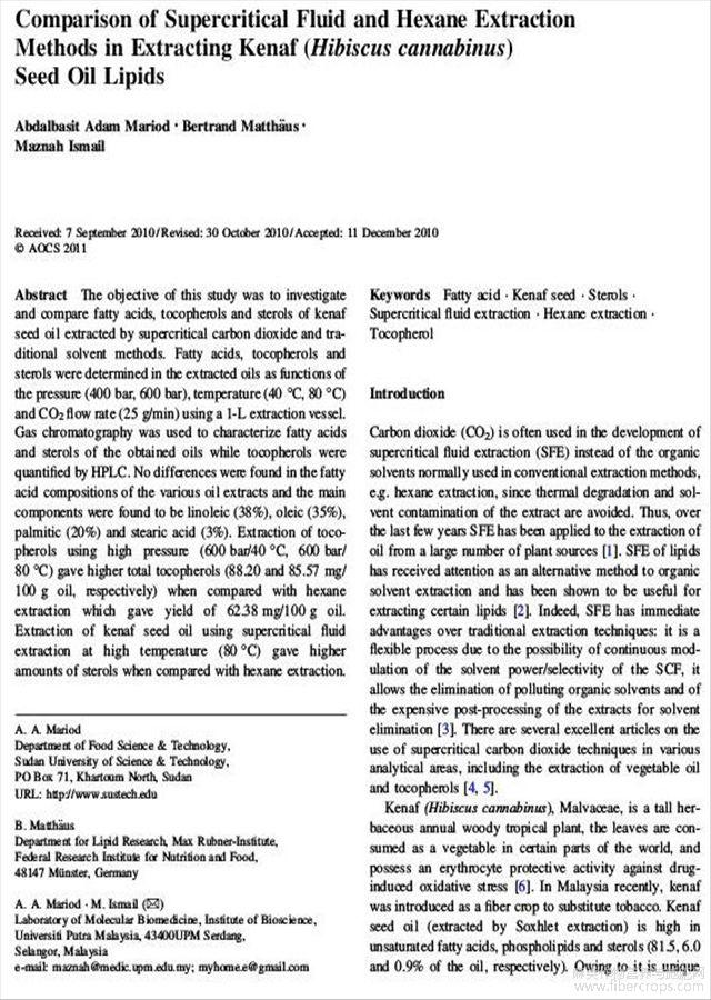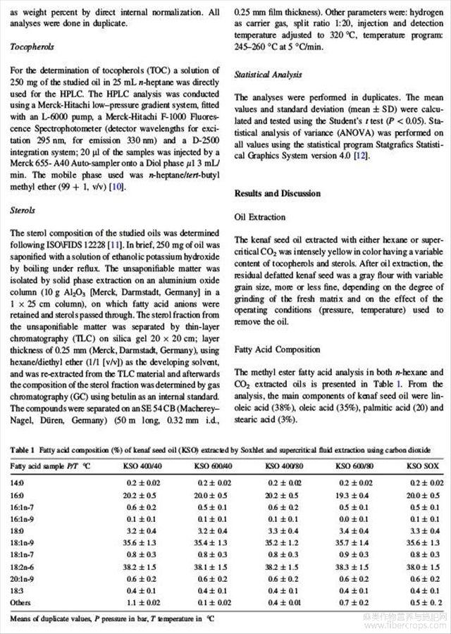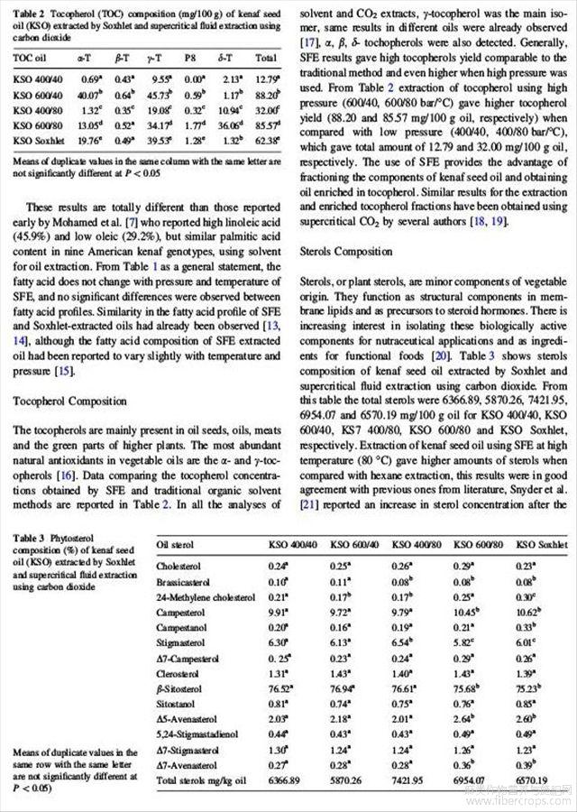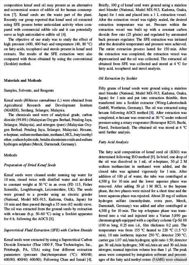 超临界流体法与己烷提取法在红麻种子油脂提取中的对比研究(英文)