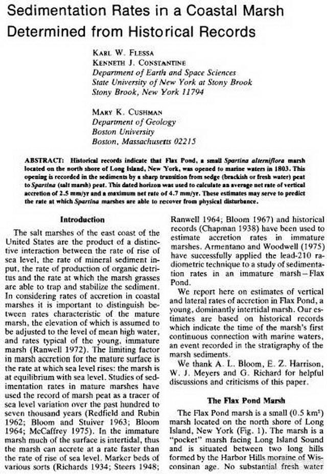 沿海沼泽沉积速率的历史数据的研究(英文)