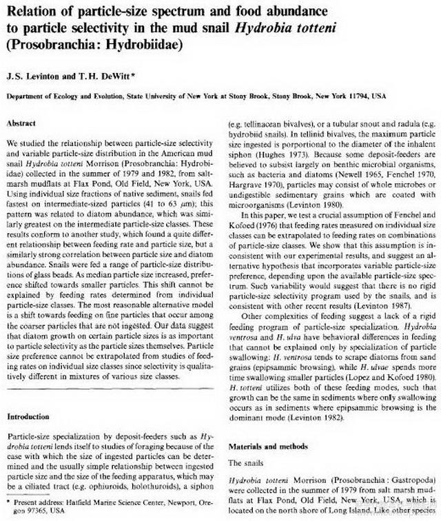 泥螺Hydrobia totteni中颗粒选择性和颗粒分布的相关性研究(英文)