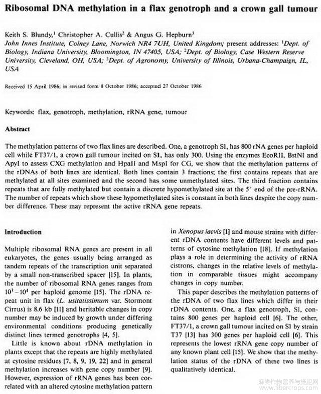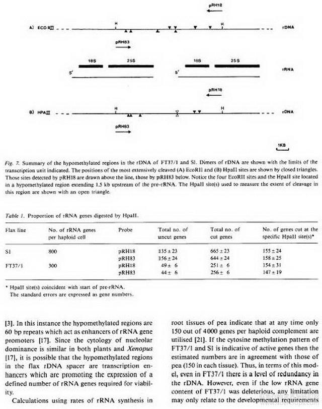 亚麻基因和根瘤中rDNA甲基化作用机制的研究(英文)