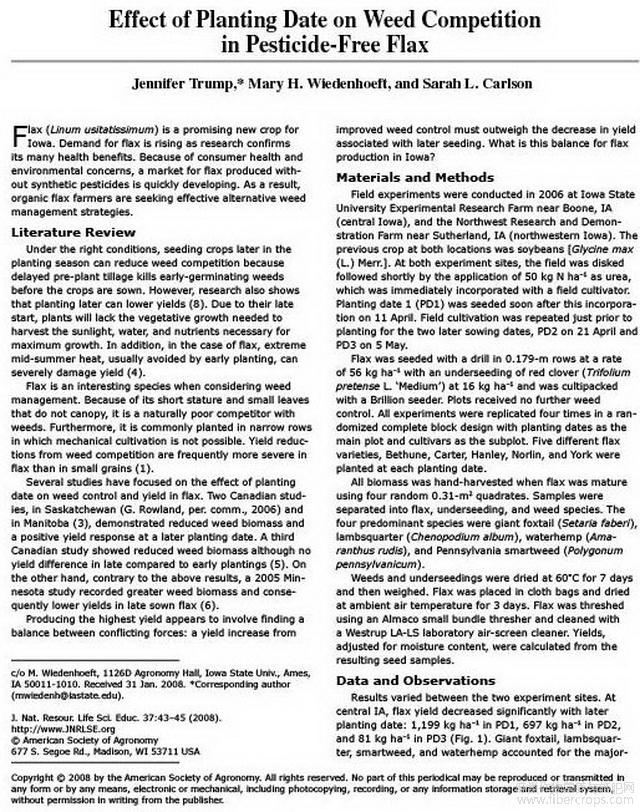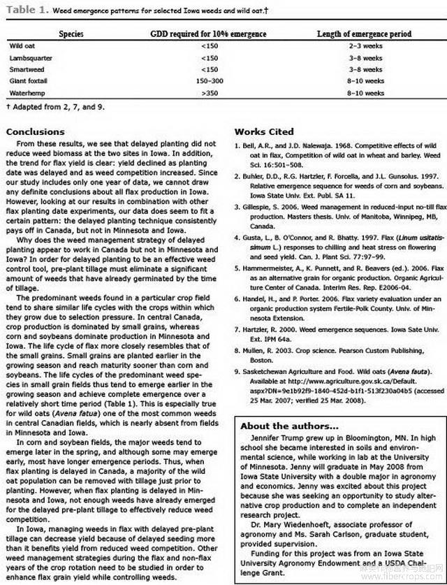 种植时间对有机亚麻与杂草间竞争关系的影响(英文)