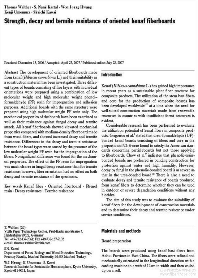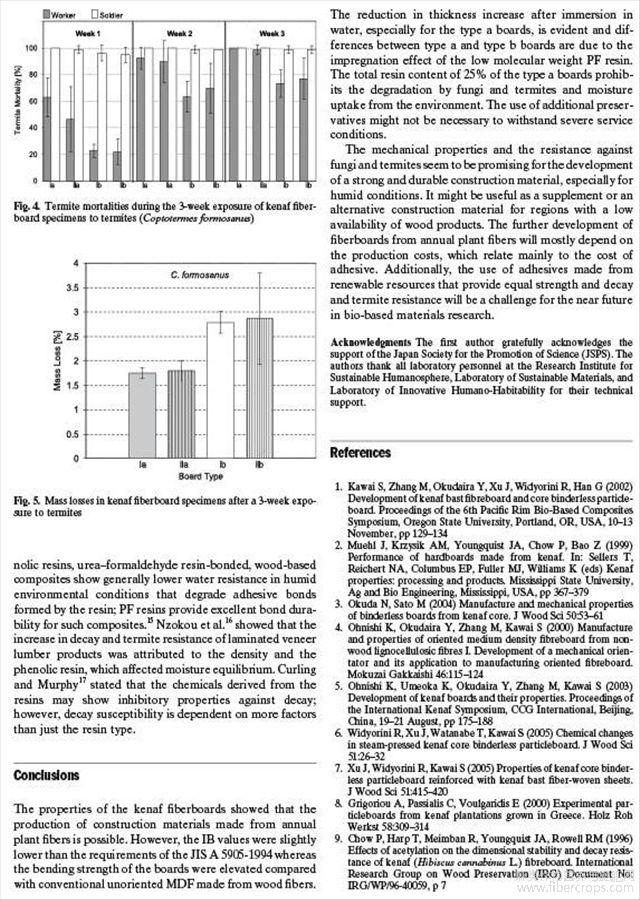 定向红麻纤维板的强度,耐腐蚀性和白蚁抗性的研究(英文)