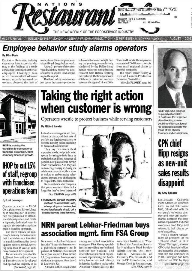 来源:Nation's Restaurant News;Aug4,2003;37,31