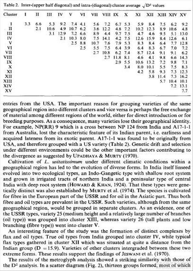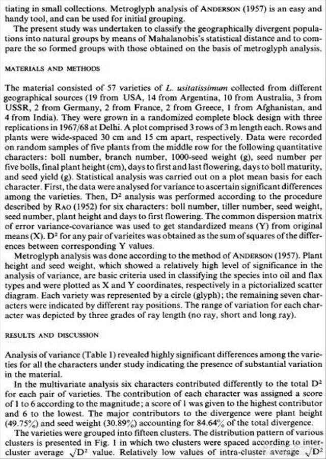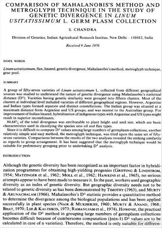 马氏方法和metroglyph技术在亚麻种质收集的遗传多样性的比较研究(英文)
