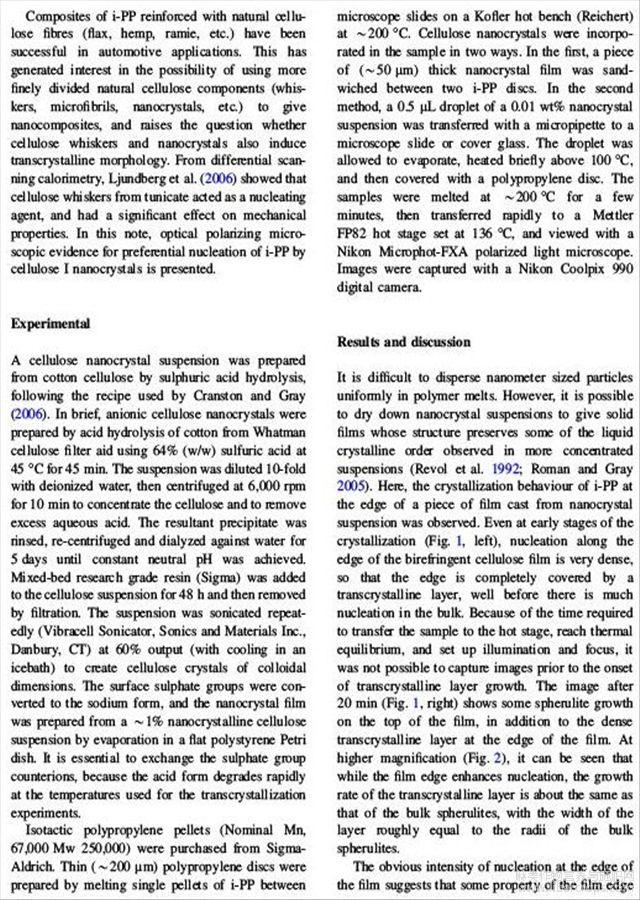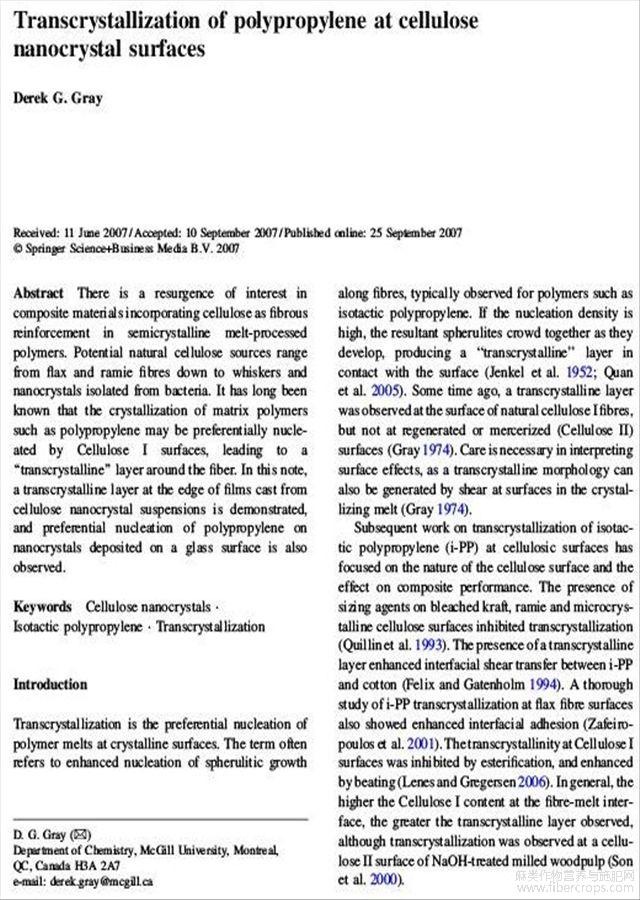 纤维素纳米晶体表面聚丙烯穿晶现象的研究(英文)