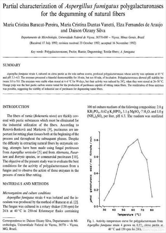 苎麻纤维烟曲霉聚半乳糖醛酸脱胶酶的部分特性的研究(英文)
