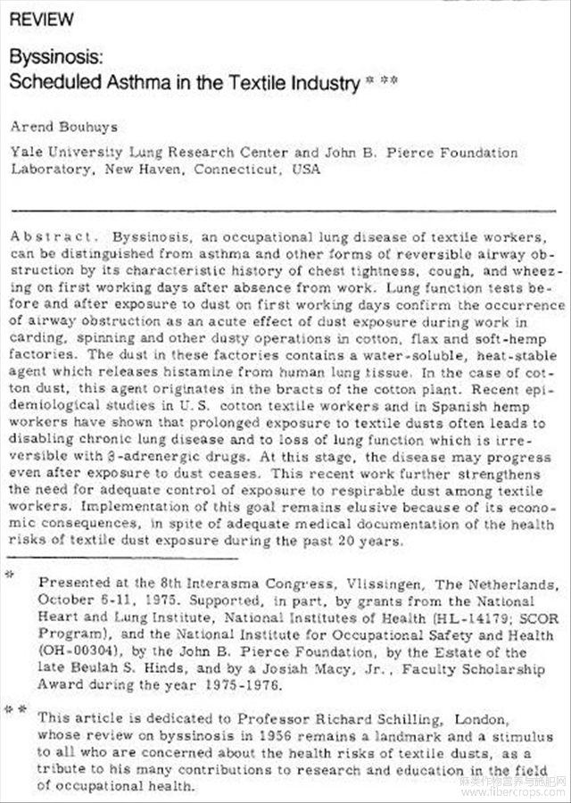 纺织行业的职业病——棉纤维吸入性肺炎的研究进展(英文)