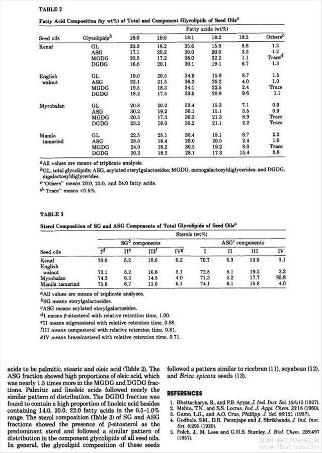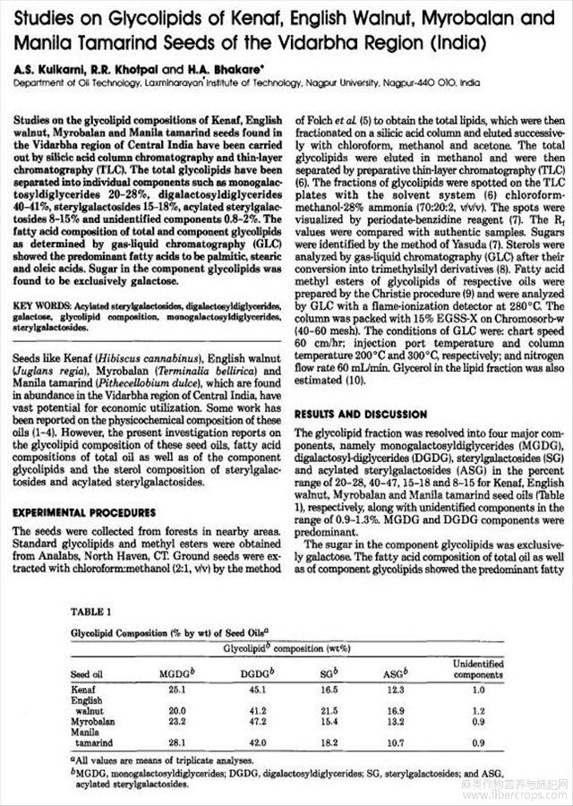 印度维达巴地区的红麻,英国胡桃,樱桃李和罗望子种子中糖脂的研究(英文)