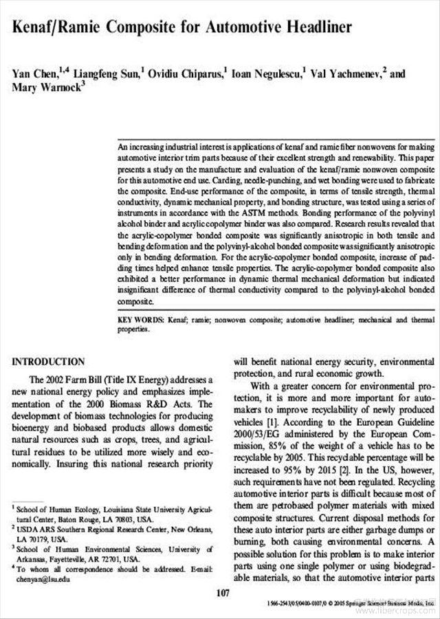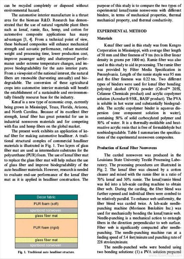 利用红麻、苎麻复合材料制作汽车顶棚研究(英文)
