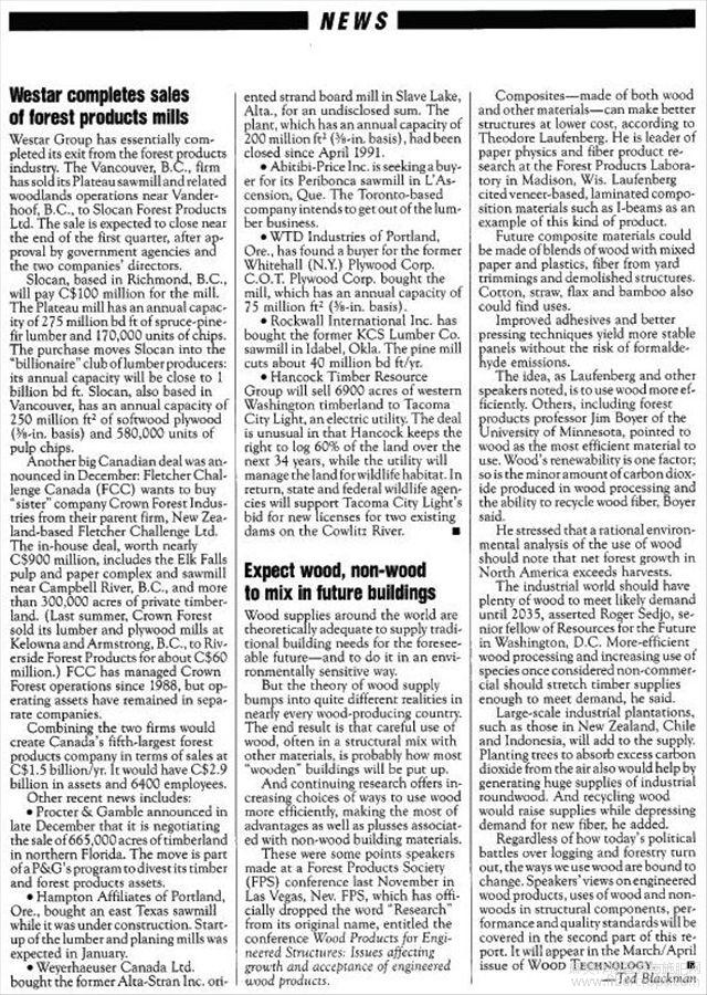 来源:Wood Technology; Jan/Feb 1993;120,1:24
