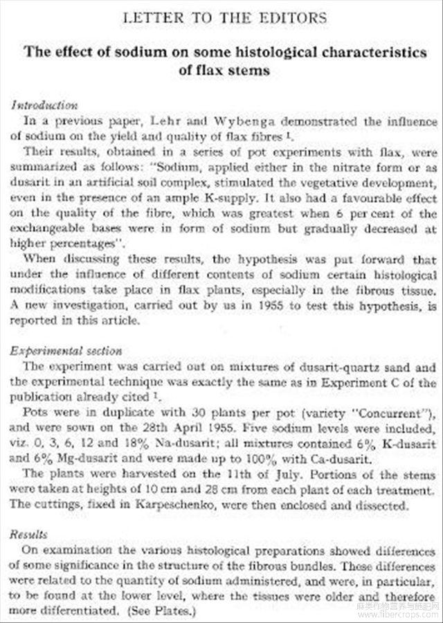 钠对亚麻茎秆中组织学特性的影响(英文)