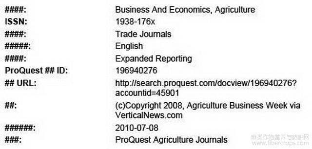 来源:Agriculture Business Week (Jan 28, 2008): 65