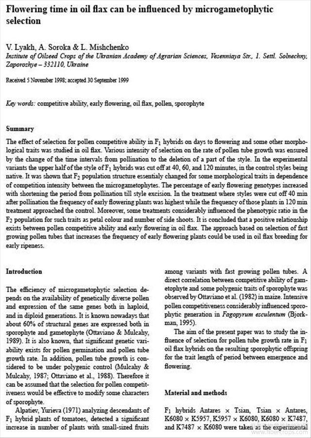 配子体的选择对亚麻花期的影响(英文)