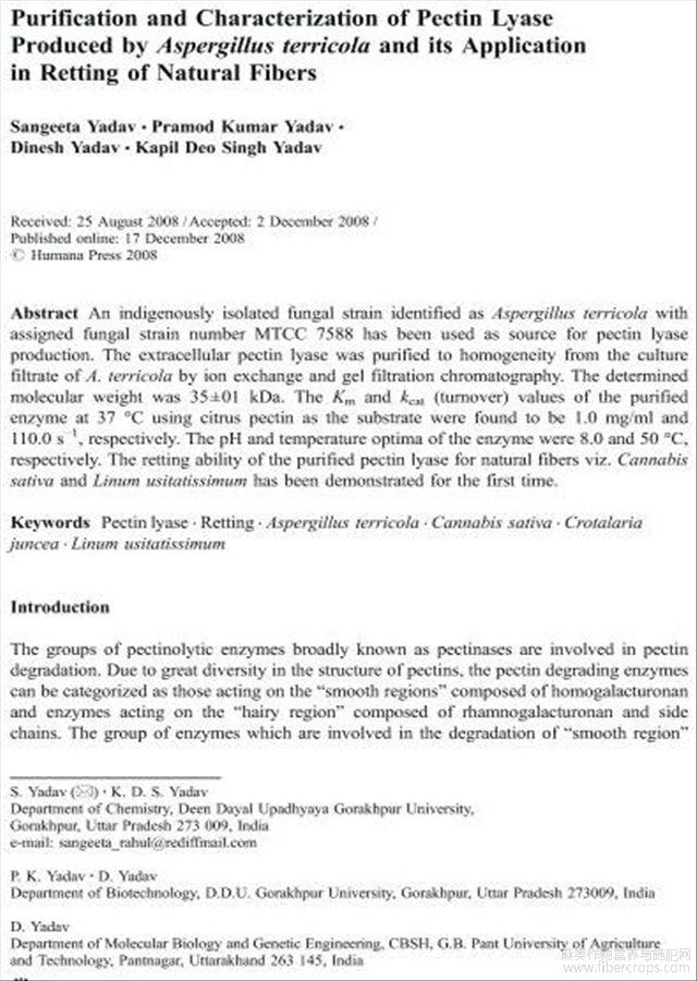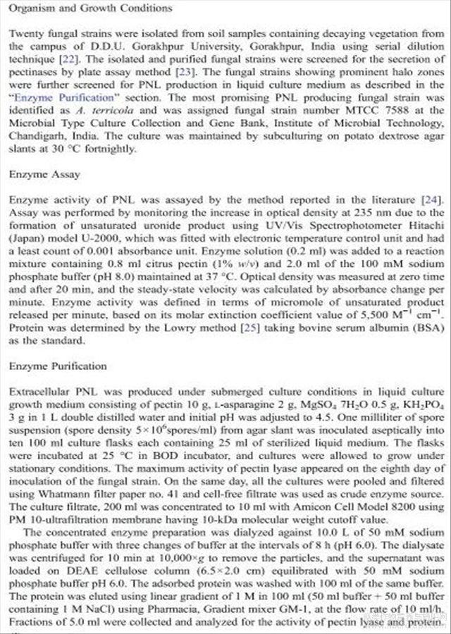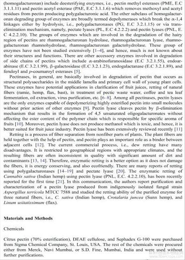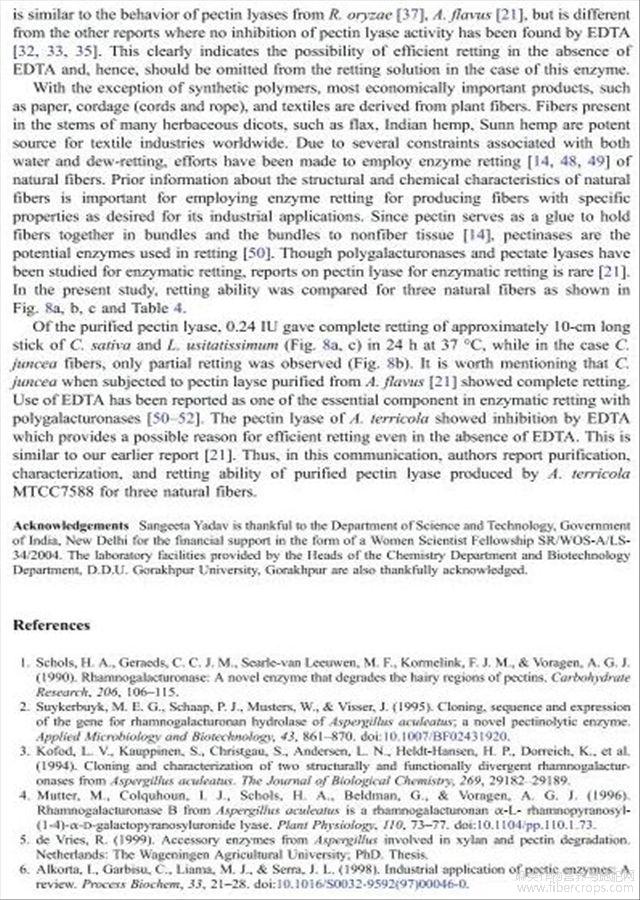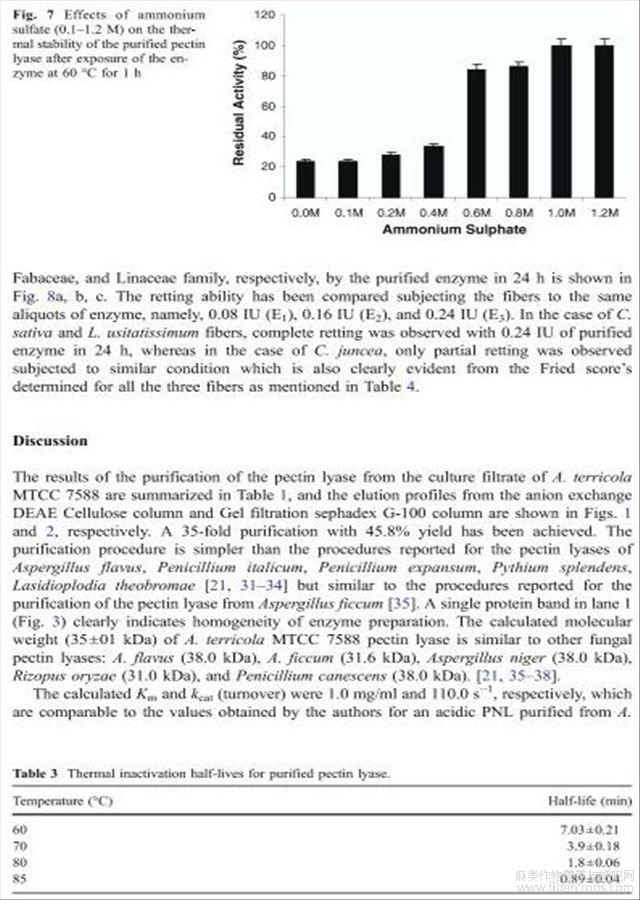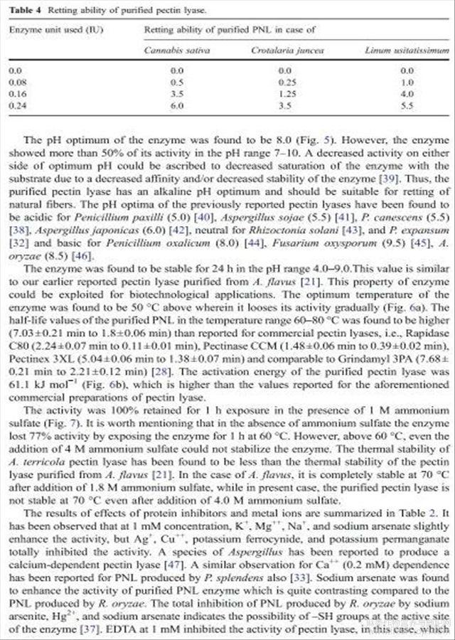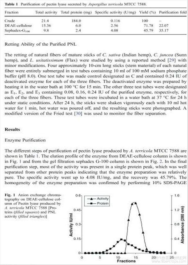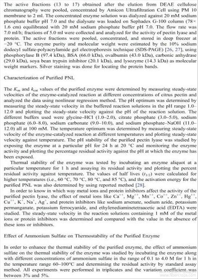 栖土曲霉果胶酸酯裂解酶的净化特性及其在纤维脱胶中的应用(英文)