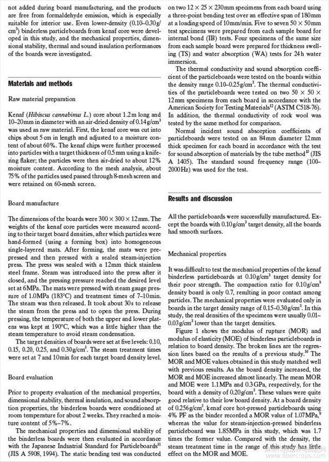 红麻芯材低密度无粘结板的加工及特性(英文)