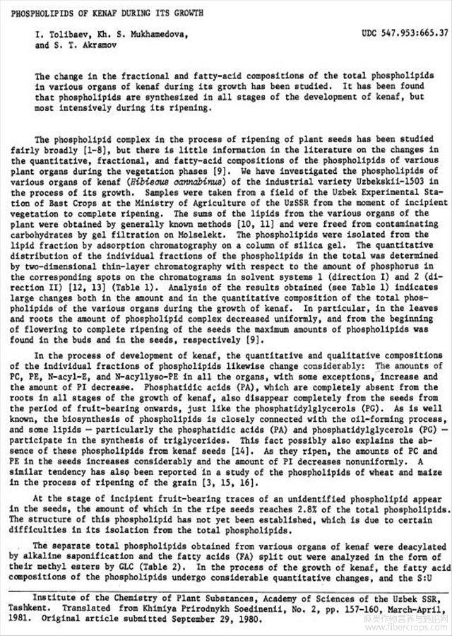 红麻生长过程中磷脂质成分分析(英文)