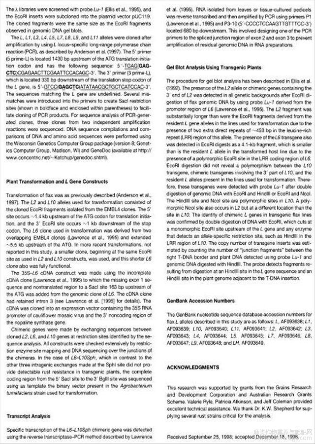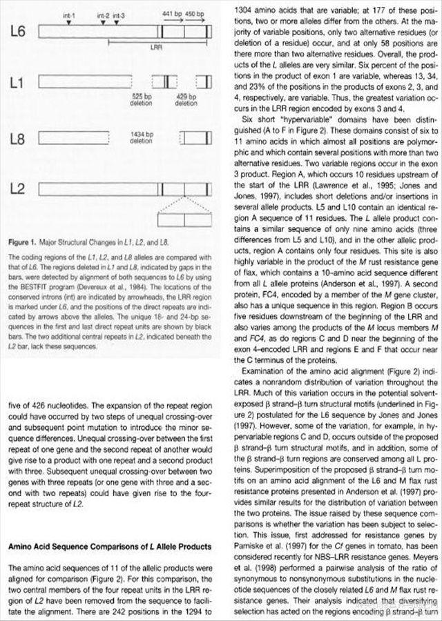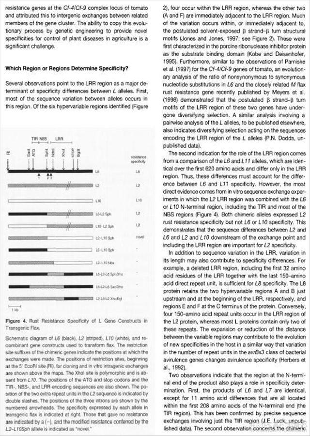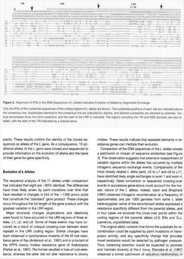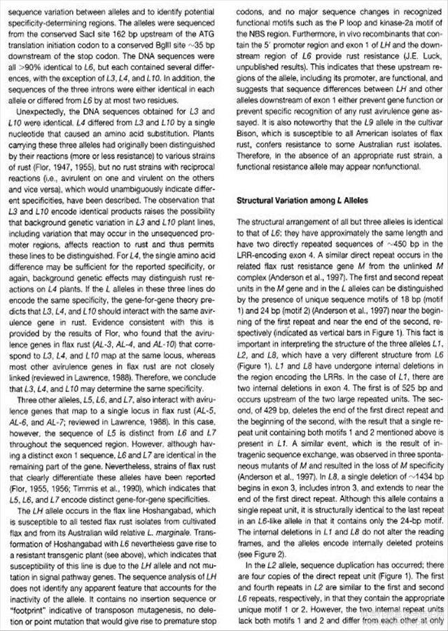 亚麻抗锈病L型基因中决定基因对基因特异性差异的等位基因的识别区域的研究(英文)