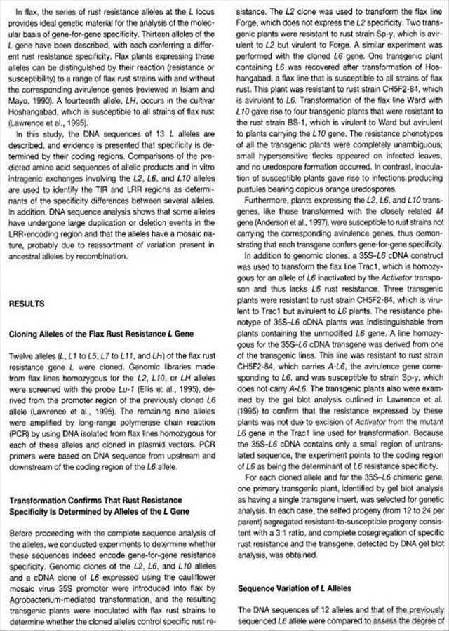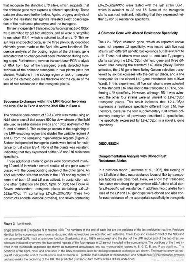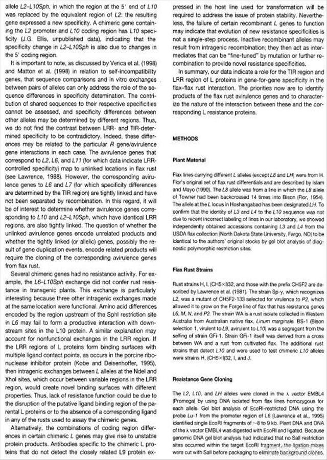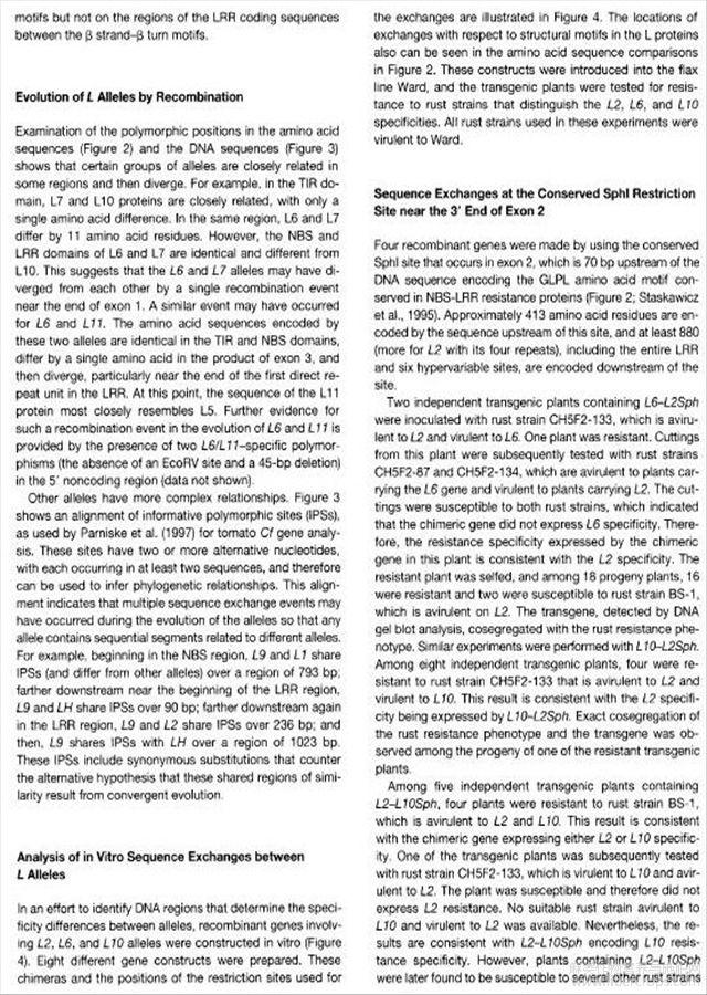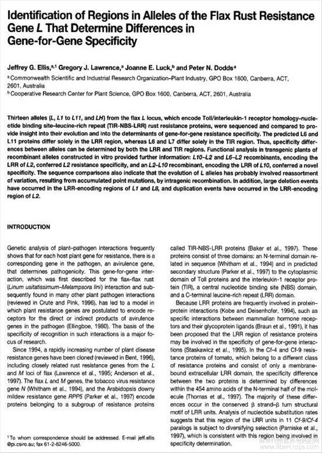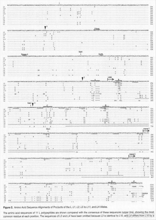 亚麻抗锈病L型基因中决定基因对基因特异性差异的等位基因的识别区域的研究(英文)