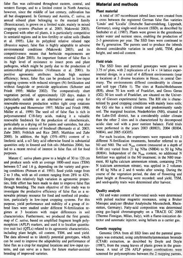 亚麻农艺性状基因图谱的研究(英文)