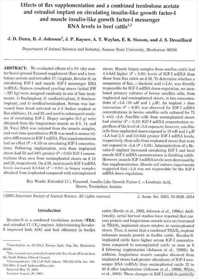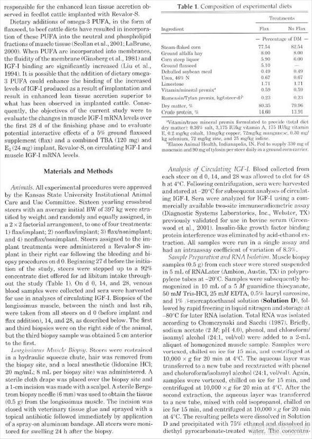 亚麻膳食纤维补充和乙酸去甲雄三稀醇酮-雌二醇复合物的移植对育肥牛体内血清和肌肉类