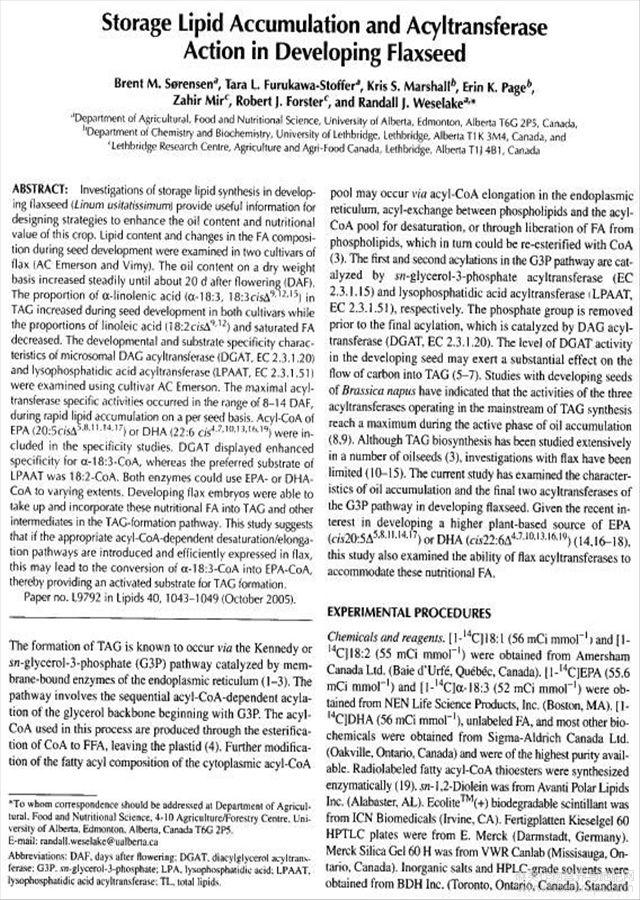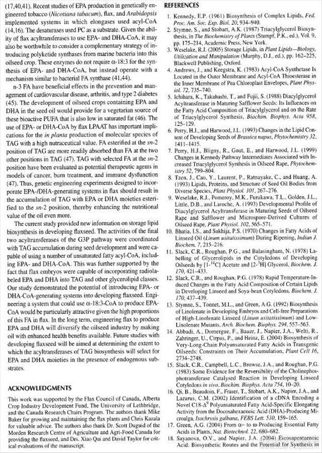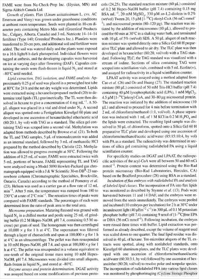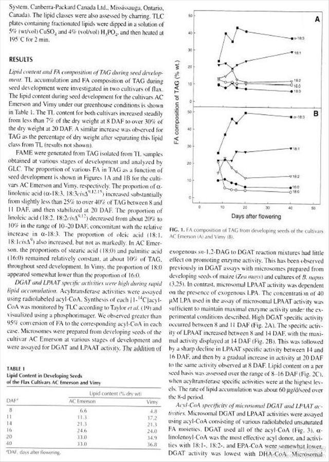 亚麻生长发育中脂类物质的积累及酰基转移酶作用的研究(英文)