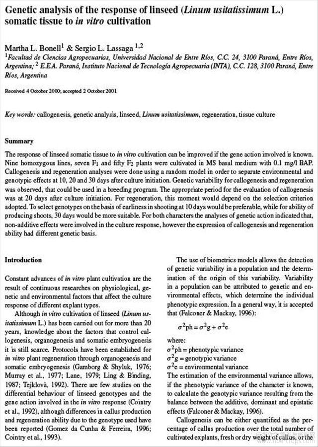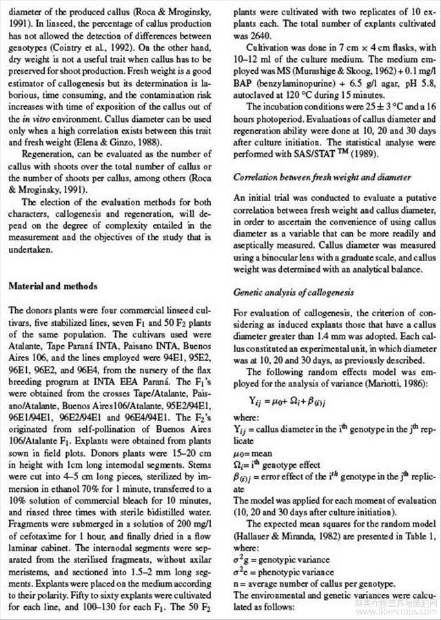 亚麻籽体组织对体外培养反应的遗传分析(英文)